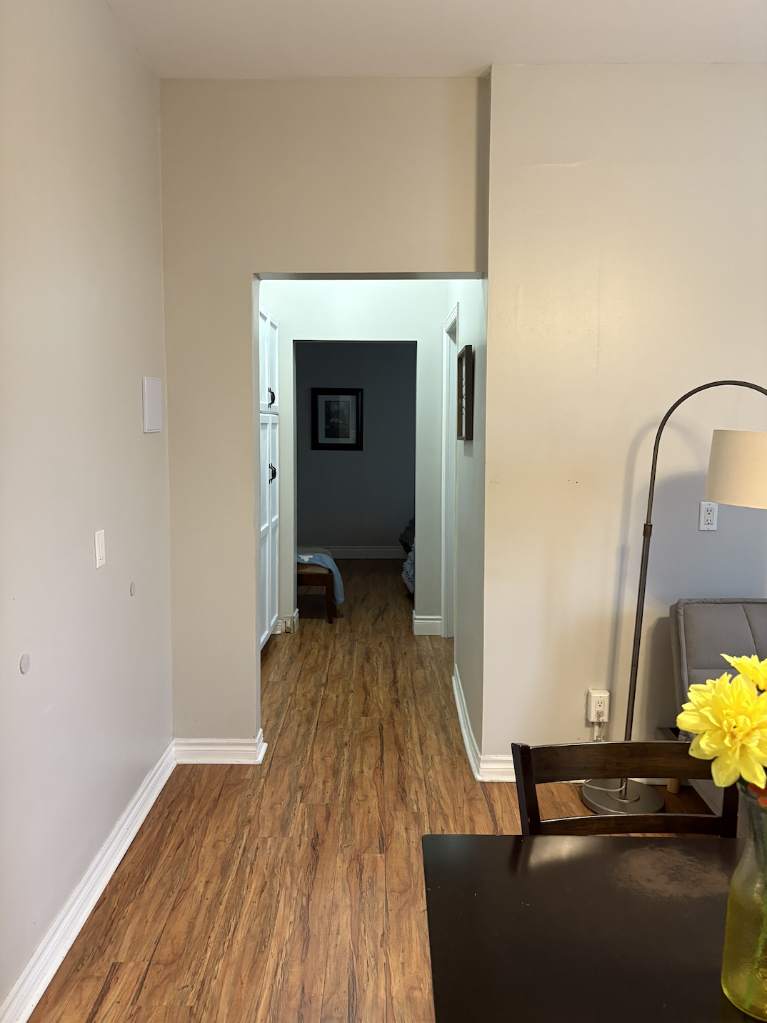 - One-bedroom apartment with one bathroom, living, dining, and kitchen.