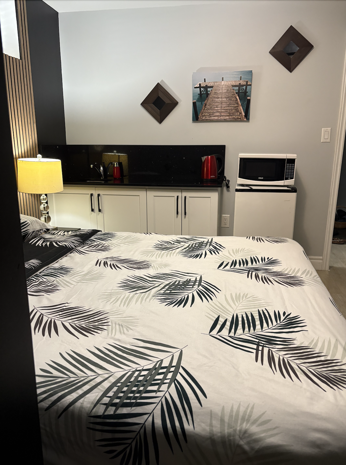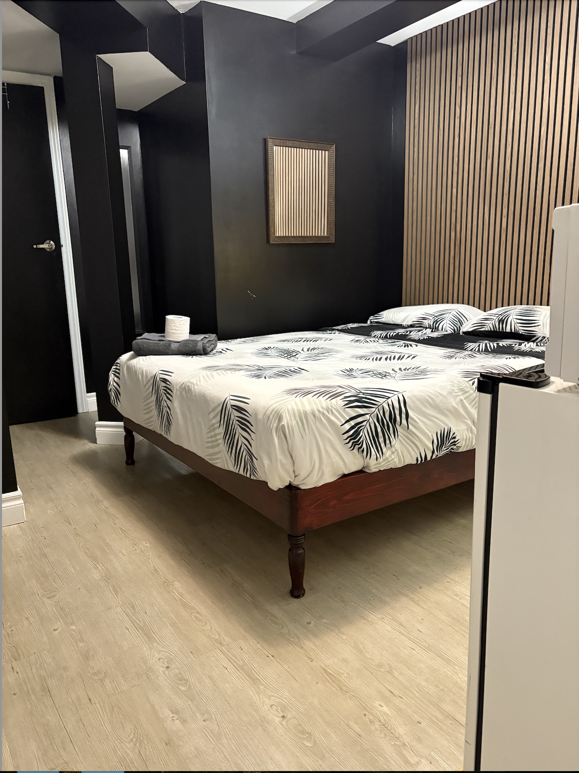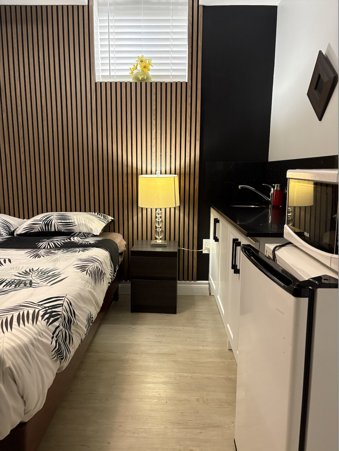 - Studio space fully furnished with a shared bathroom and kitchenette.